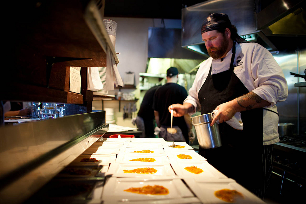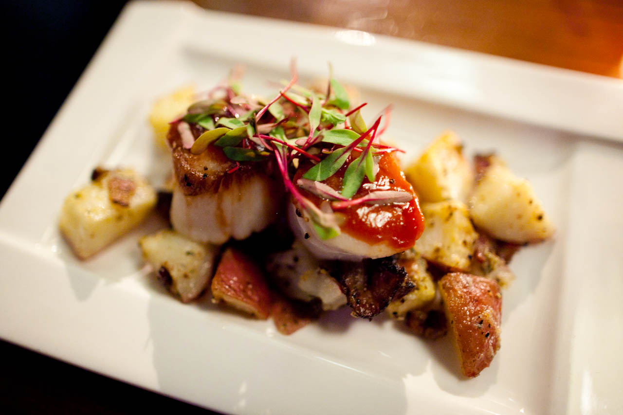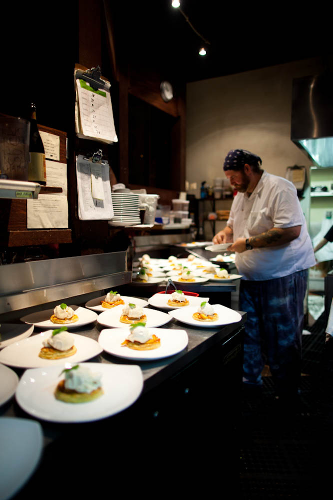 Sorry folks, I know I’ve been away for a while but life in the fast lane as a hot-shot chef can be very busy….Actually, I’m just a lazy schlep sometimes and things pile up, but I’m back and with a new beer dinner post! This time, I’m proud to introduce Grand Teton Brewing out of Victor Idaho. They are a new brewery who has an interesting history. I’m not sure if anyone has ever heard of the term “growler” but it is a vessel that you can use to carry beer out of an establishment in bulk to enjoy at home. When I used to work at Taco Casa in Corryville many years ago, we had our own growlers. They were used plastic gallon milk jugs that were once homes to the house-made hot sauce. We’d go to Clifton and get to go beer from Fries, pronounced frees. I believe we were actually the first guys who discovered “chili beer.” We won’t take credit for it because the beer we drank sucked. To make a long story short, growlers were illegal in many states and Grand Teton fought very hard to allow breweries to export if you will, their beer to your home. Below are some of the wonderful shots Sonya Yu took that highlights some of the cuisine I created for this event.