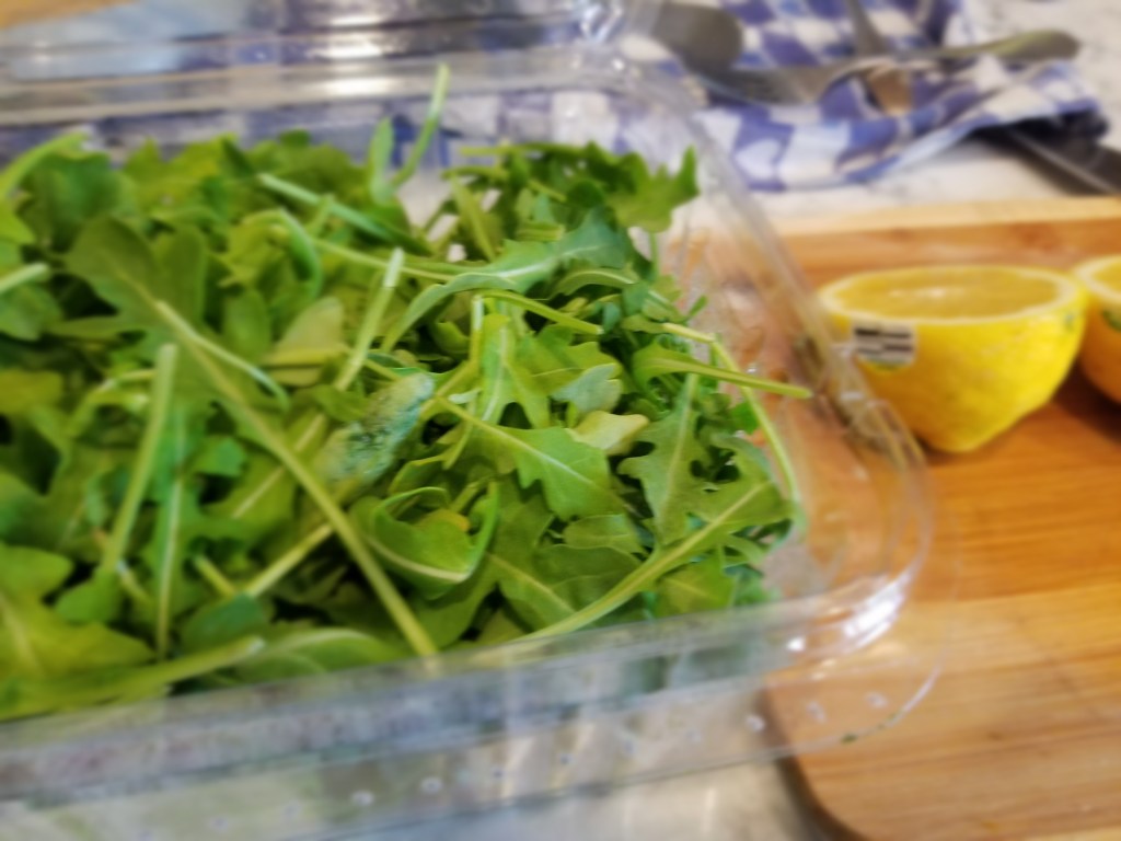 The base of our meal was Peruvian beans, white onion, diced tomatoes, garlic, white wine, paprika, lemon juice, and salt and pepper. Though Jungle Jim’s didn’t have Peruvian beans, white and red beans were a suitable substitute. I also topped the beans with sauteed arugula with fresh lemon juice, garlic, and sea salt.