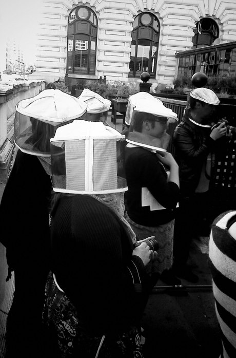 We were then brought out to the roof to see up close how the bees interact with each other and humans. It was quite windy and chilly but Spencer did a great job tending to the hives. He only got stung once!
