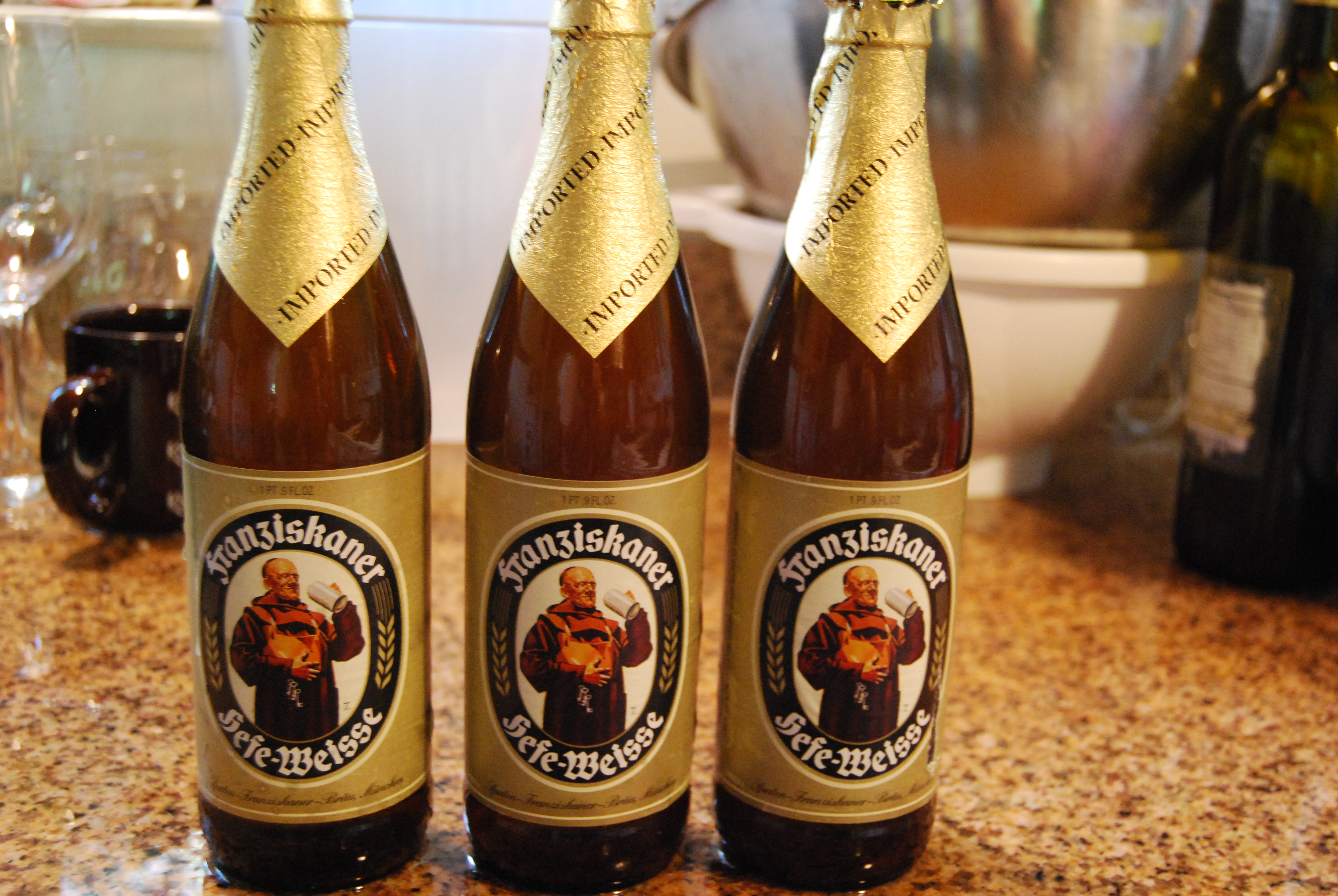 The first step is to choose the beer for your cheese sauce. I prefer a weissbeir like Franziskaner Weissbeir. It has a great floral flavor with hints of banana that really makes this dish stand out from other mac-n-cheese dishes.