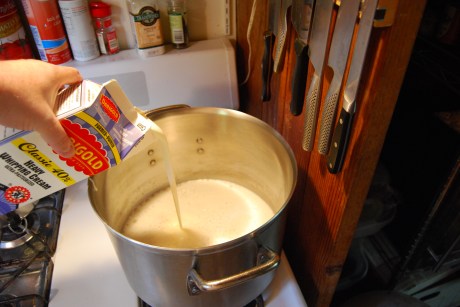 The next step is to heat up the cream. I like using beer in this dish not only for the flavor but also for the fact that alcohol stabilizes the cream and helps it from scorching.