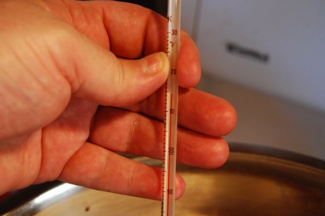 Look for that 116 degree temperature on your thermo and when achieved, add the remaining chocolate to cool down and pull off heat.